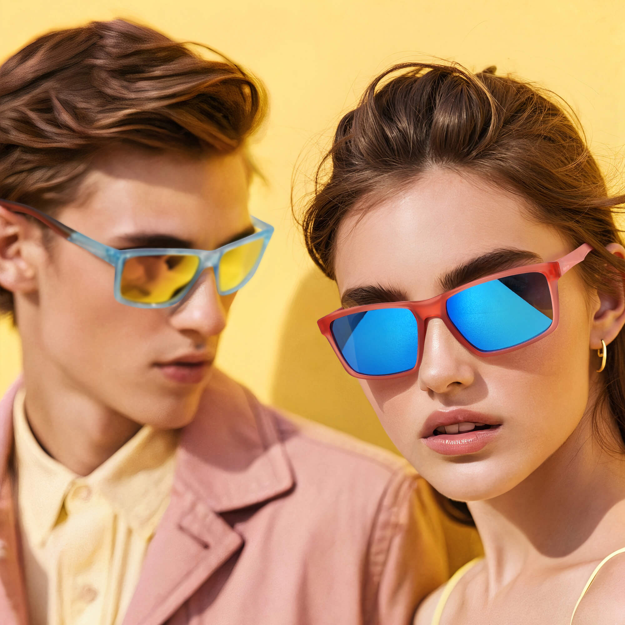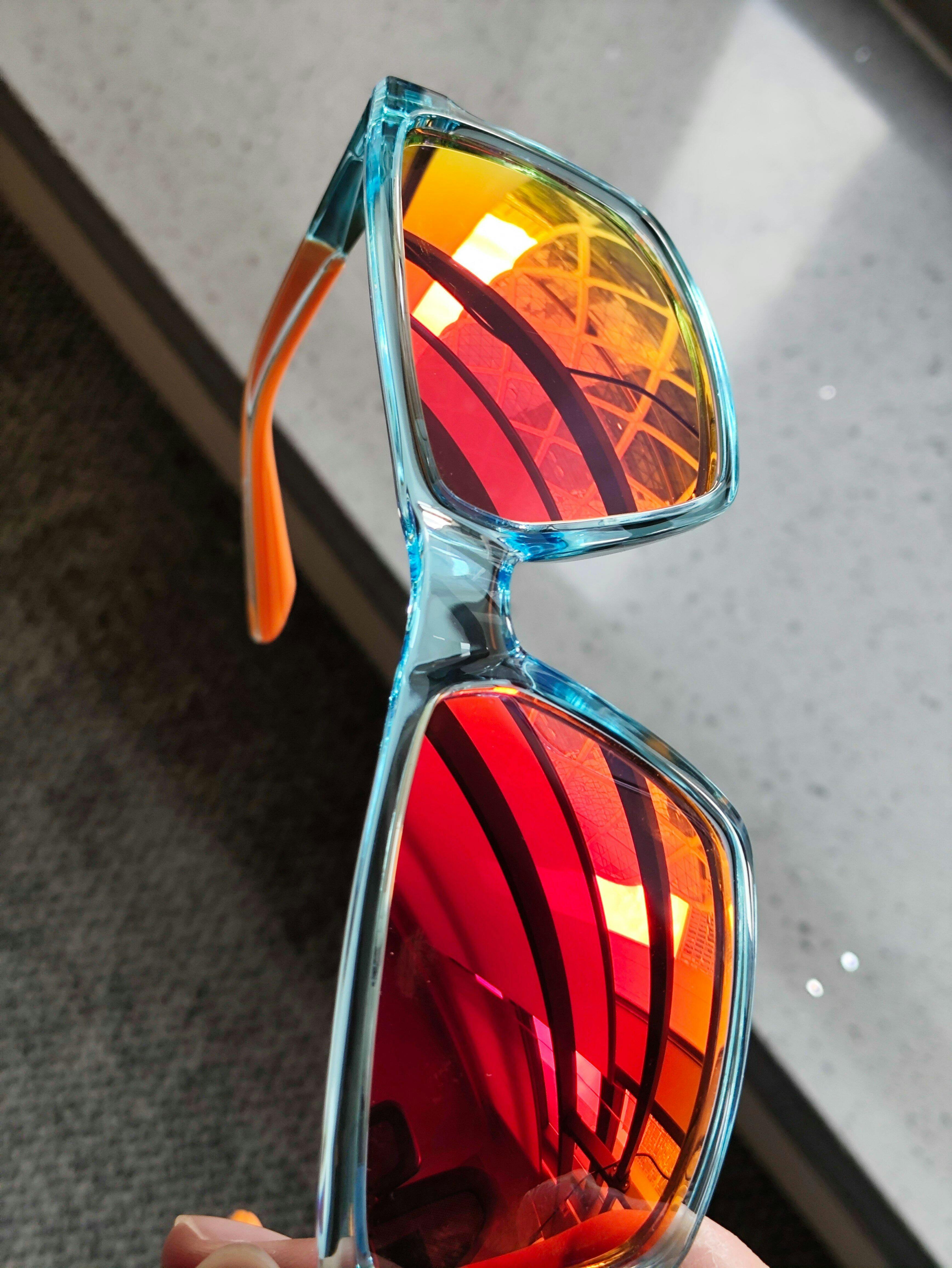 Coral arms hotter than midday sand, ocean-blue lenses that flirt with the horizon—these sunglasses don’t whisper. They’re for group selfies mid-cannonball. For barefoot dancing under palm-tree speakers. For the moment you toss your hat and say, “Screw it, let’s ride.”