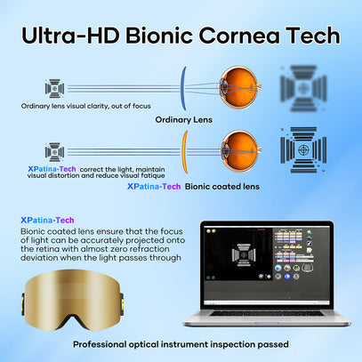 XPatina-Tech Ultra-HD Bionic coated lens ensure that the focus of light can be accurately projected onto the retina with almost zero refraction deviation when the light passes through, ensuring that the outline of the observed object is highly restored, thereby achieving a high-definition effect.