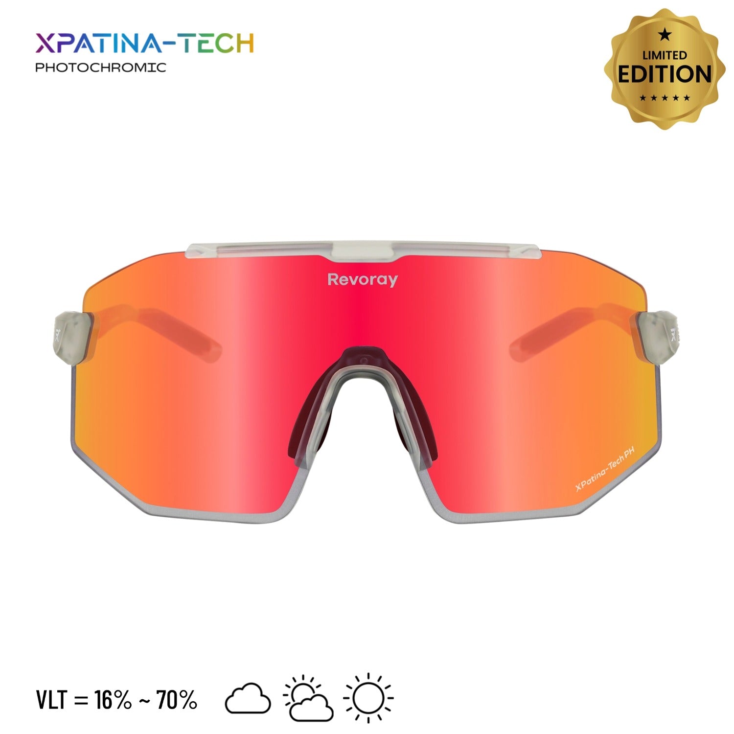 Riding through changing light conditions? Let your lenses do the work. Highly photosensitive molecules adjust tint depth according to UV intensity, automatically matching the ideal VLT for clear vision and lasting comfort.