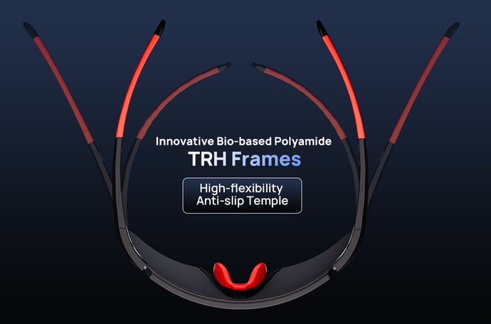 The innovative 35g bio-based polyamide TRH frame offers a unique combination of high transparency, lightweight design, flexibility, and chemical resistance. Reaching top international levels. It is partially produced from a renewable and sustainable source. The high-flexibility, anti-slip temple arms ensure a secure and comfortable fit during any activity, delivering premium performance with an eco-conscious design.