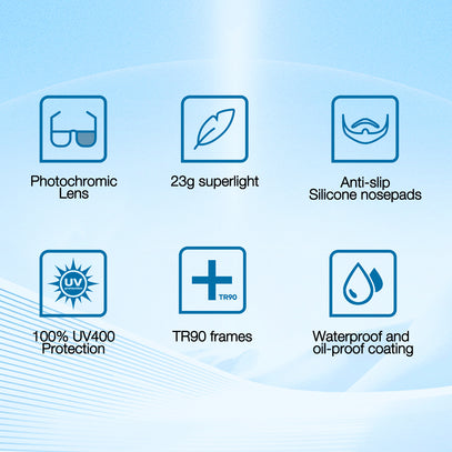 See Sharper, Run Bolder. Photochromic sunglasses Brisk Y2 utilize highly photosensitive molecules that respond to UV light within seconds, adjusting to the most appropriate condition.The bottom frameless and wide panoramic lens design provides an obstruction-free view with a lightweight feel.
