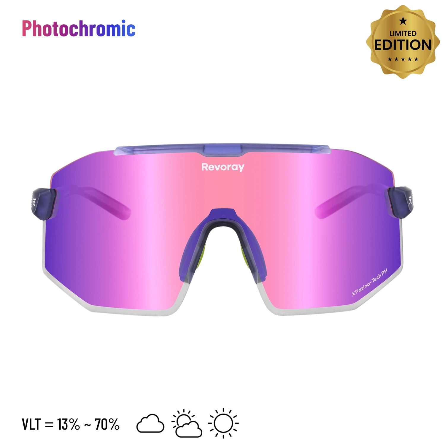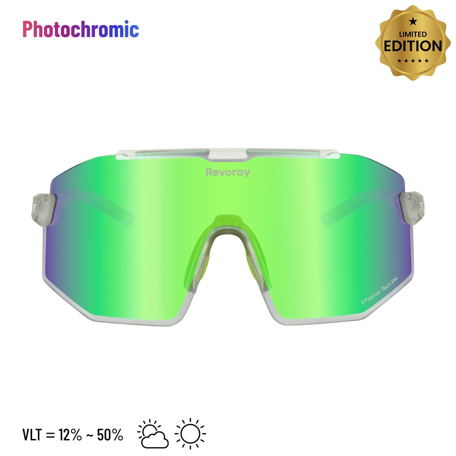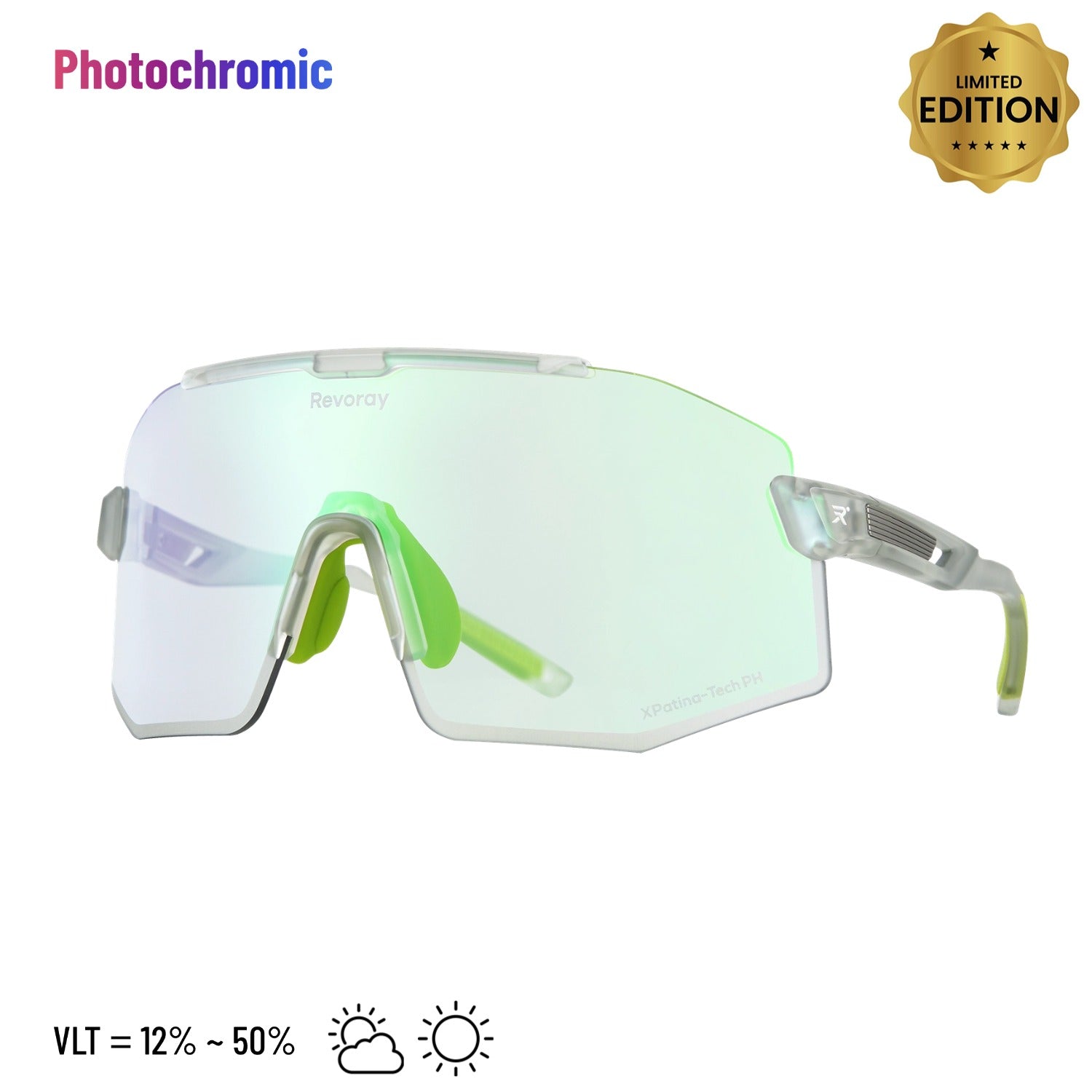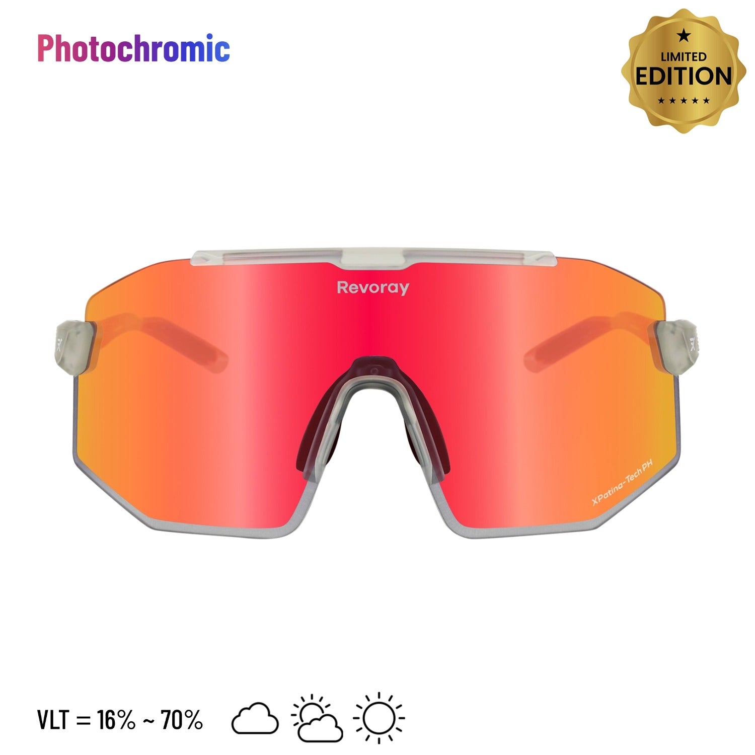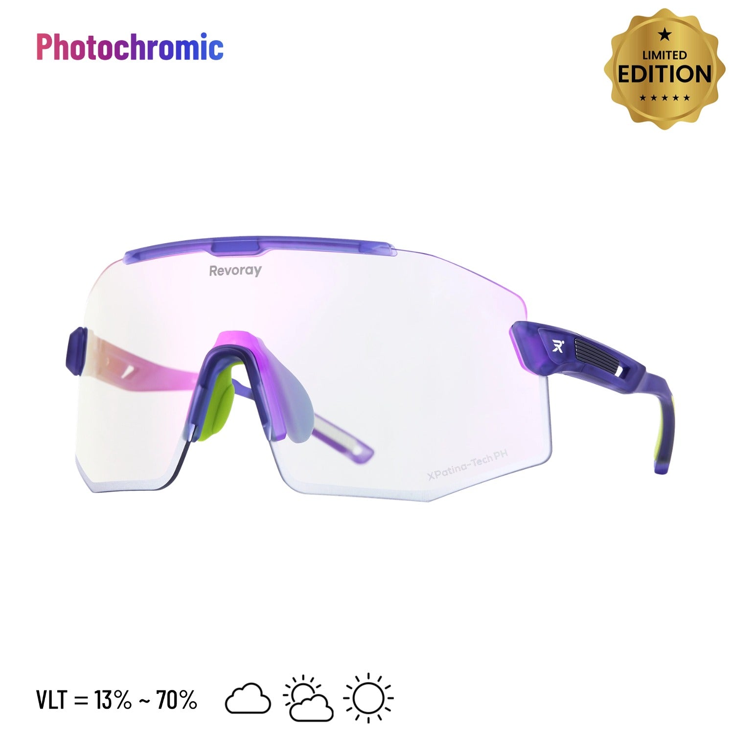 Riding through changing light conditions? Let your lenses do the work. Highly photosensitive molecules adjust tint depth according to UV intensity, automatically matching the ideal VLT for clear vision and lasting comfort.